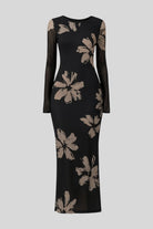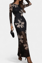 - Textuur en print: Delicate bloemenprints ontmoeten netpatroon draping voor diepte en beweging.